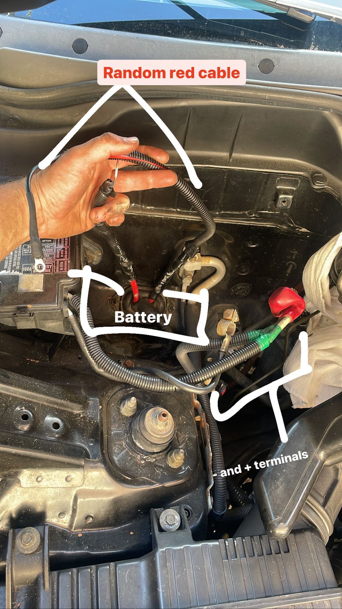 been driving this 98 crv for about a year and have had some power issues that I think I’ve mostly fixed but I saw this red cable that’s loose behind my battery, removed the battery stand and frame and I can’t figure out where it’s running to.