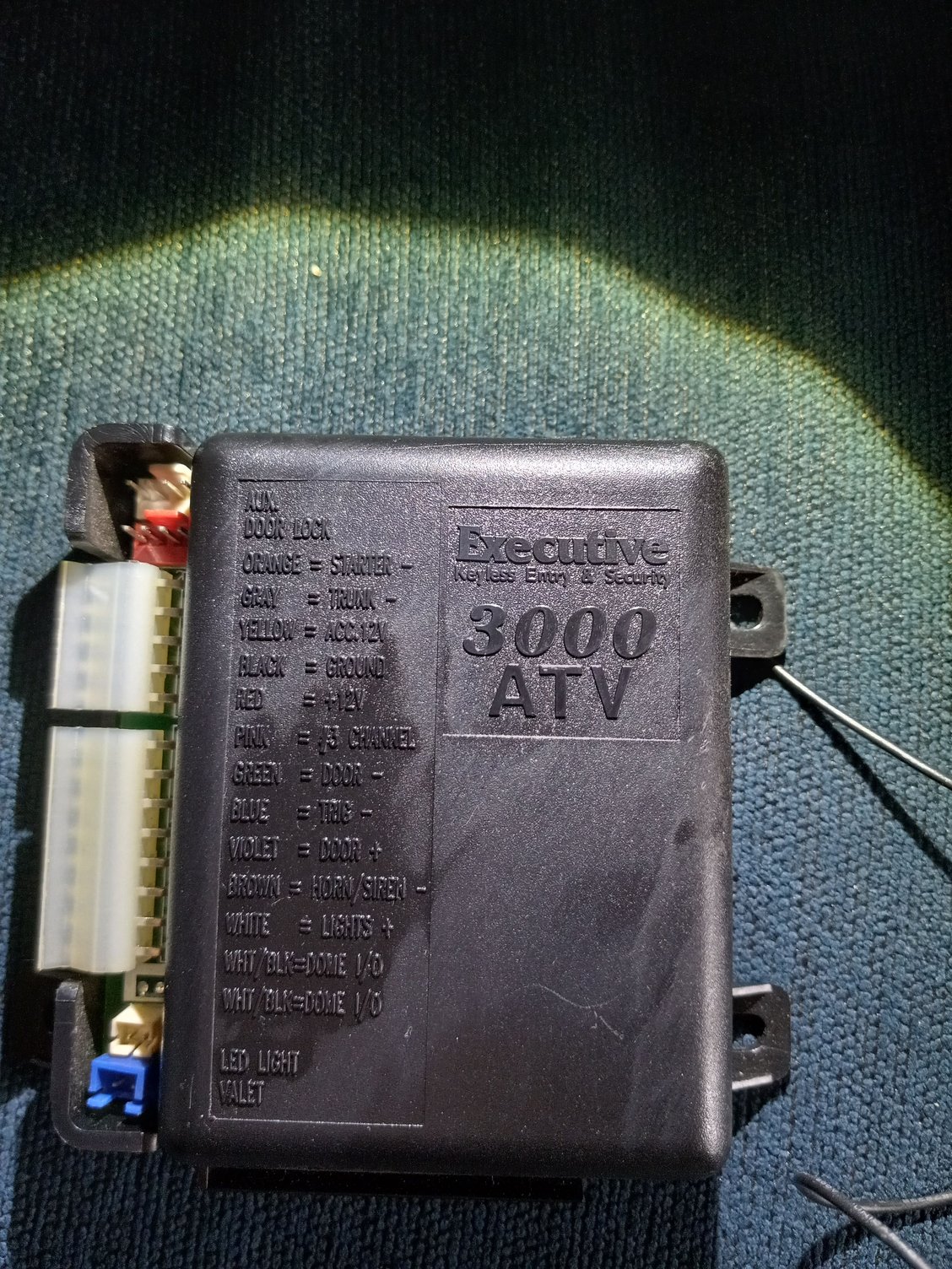 Last year I bought a 1999 Accord LX I-4-sedan from the original owner. He gave me 2 original Honda keys said there was no remote or fob. Recently, the car started beeping and would not start like a security system had been tripped. I poked around under the dash and sure enough I found an "Executive 3000 ATV keyless entry & security" module. I disconnected all the harnesses from the module and the car started right up. Does anyone know if this model was a dealer installed part or strictly after market? I'm looking for an installation manual to check the connections and figure out which fob I need to get this to work properly. Thanks. This is a an actual photo of the unit and I attached the owner's manual I found online.