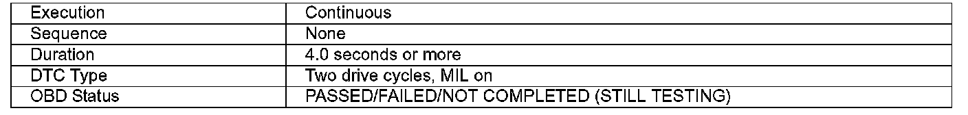 Monitor Execution, Sequence, Duration, DTC Type, OBD Status