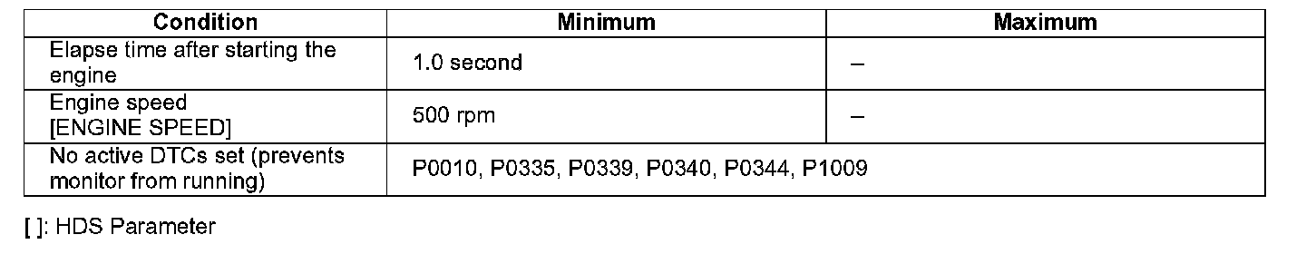 The gap between the timing of the CMP sensor A pulse and the middle of the CMP sensor A assembly is 10° or more for at least 4.0 seconds.