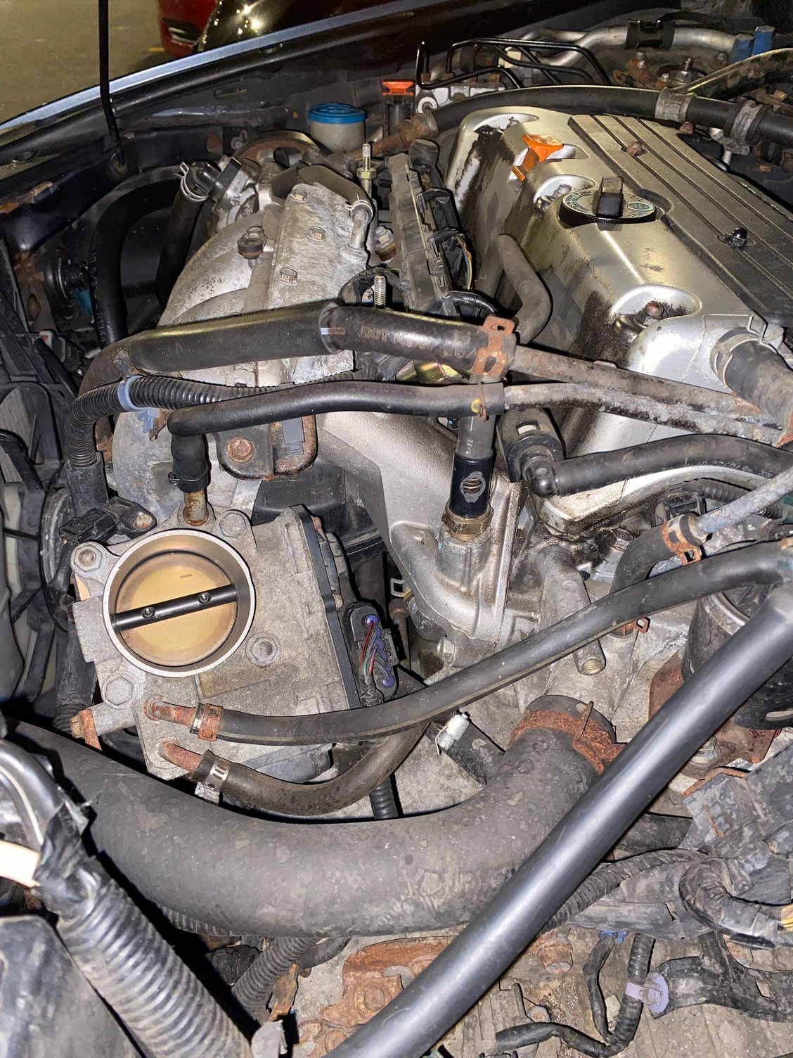 This is my first post ever and I’m in a dilemma… I have zero idea on how I broke this piece where installing my cold air intake but someway I did. I have no idea where to get it but if someone can help identify where I can get this piece it’ll help. It’s a T connector and the outlet goes connected to the lower hose into the intake. I tried to take off the gold nut connected but the hose was turning with it and I didn’t want to break that as well. I would like to buy the piece brand new but I need to know what it is in the first place then I’ll gladly break the **** with the tube and all… Where can I find the entire thing ? This is the tube, connected to the engine. The skinny tube to the right under the oil cap is what is connected to the entire thing, I was scared of breaking it. Outlet goes connected to it. The grey piece is what had a outlet for the hose to go over thats connected to the intake. An overview, ignore the rust.