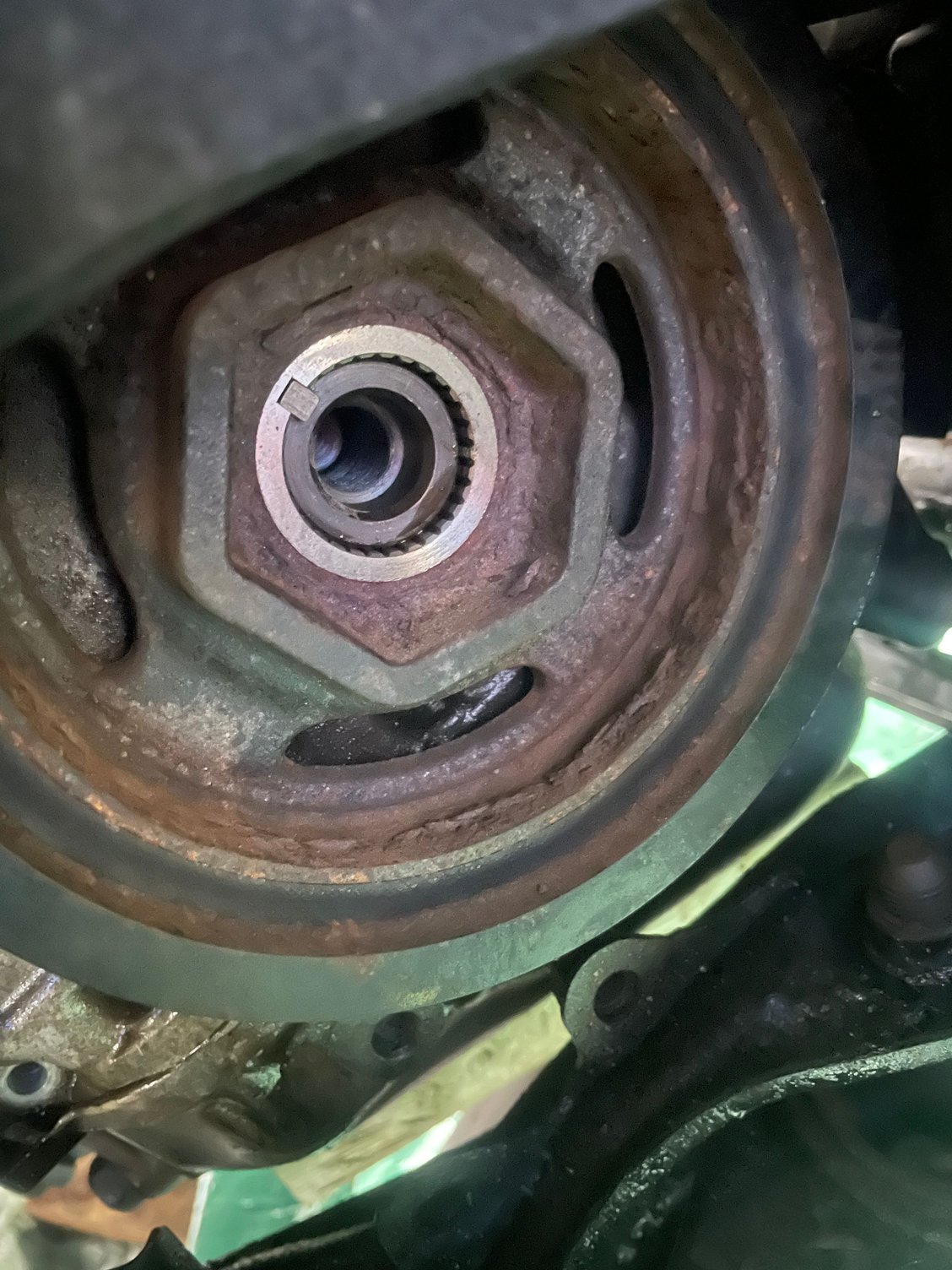 Yes the crank pulley is splined , that crank shaft isnt tho but this is the factory pulley on the car I couldn’t push the pulley in any further than that I’ve tried but I think it bottoms out on that metal washer behind the timing cover, maybe the bolt presses it on the rest of the way ? Although when I took it off the pulley slid straight off