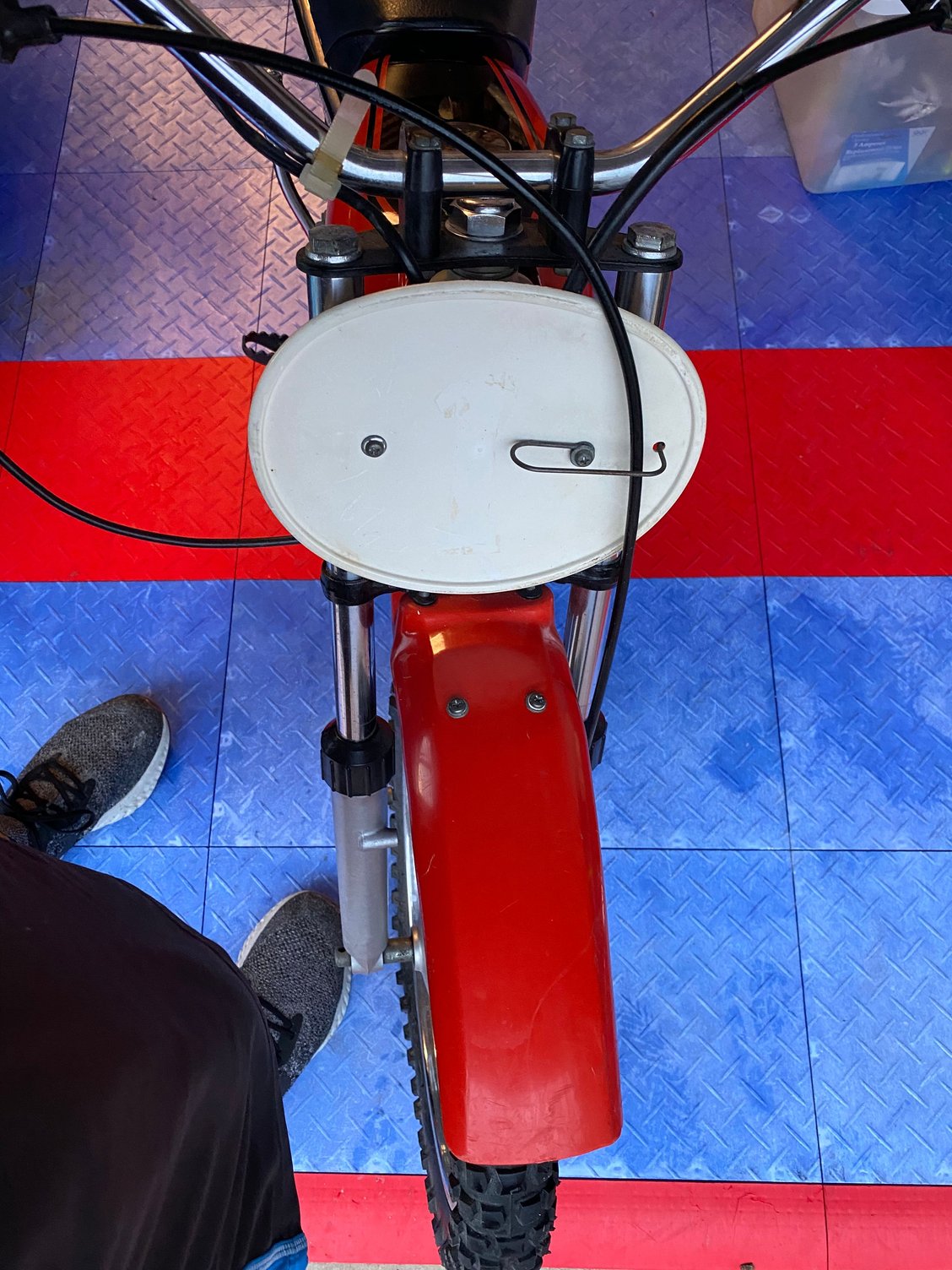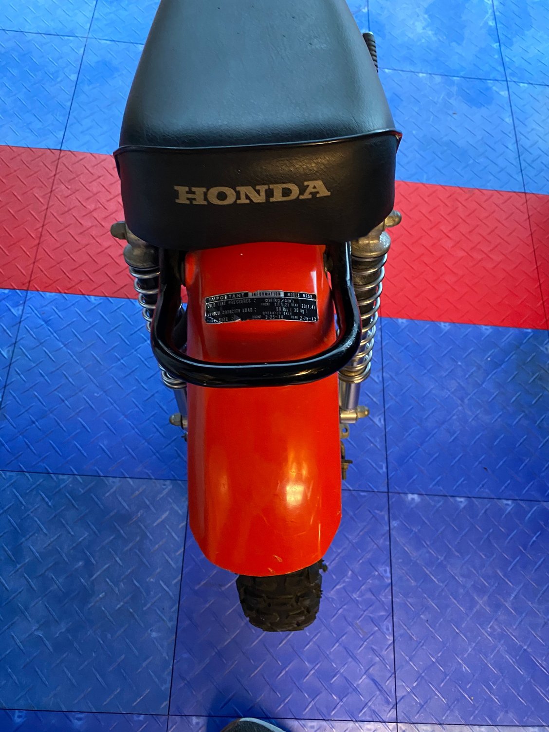 I’ve owned a 1974 Honda MR 50 Elsinore since 1974. My dad bought me this motorcycle when I was 12yrs old. I’m 58 now . This motorcycle has been kept literally inside the house for the last 25 years only taken out once every month to start it and let it run. The bike is 100% all original everything! Even the tires believe it or not. They are cracked on the sidewalls but still look great and will hold air for a quick ride. I even have the receipt! $374.00. I will post a bunch of pics tomorrow.