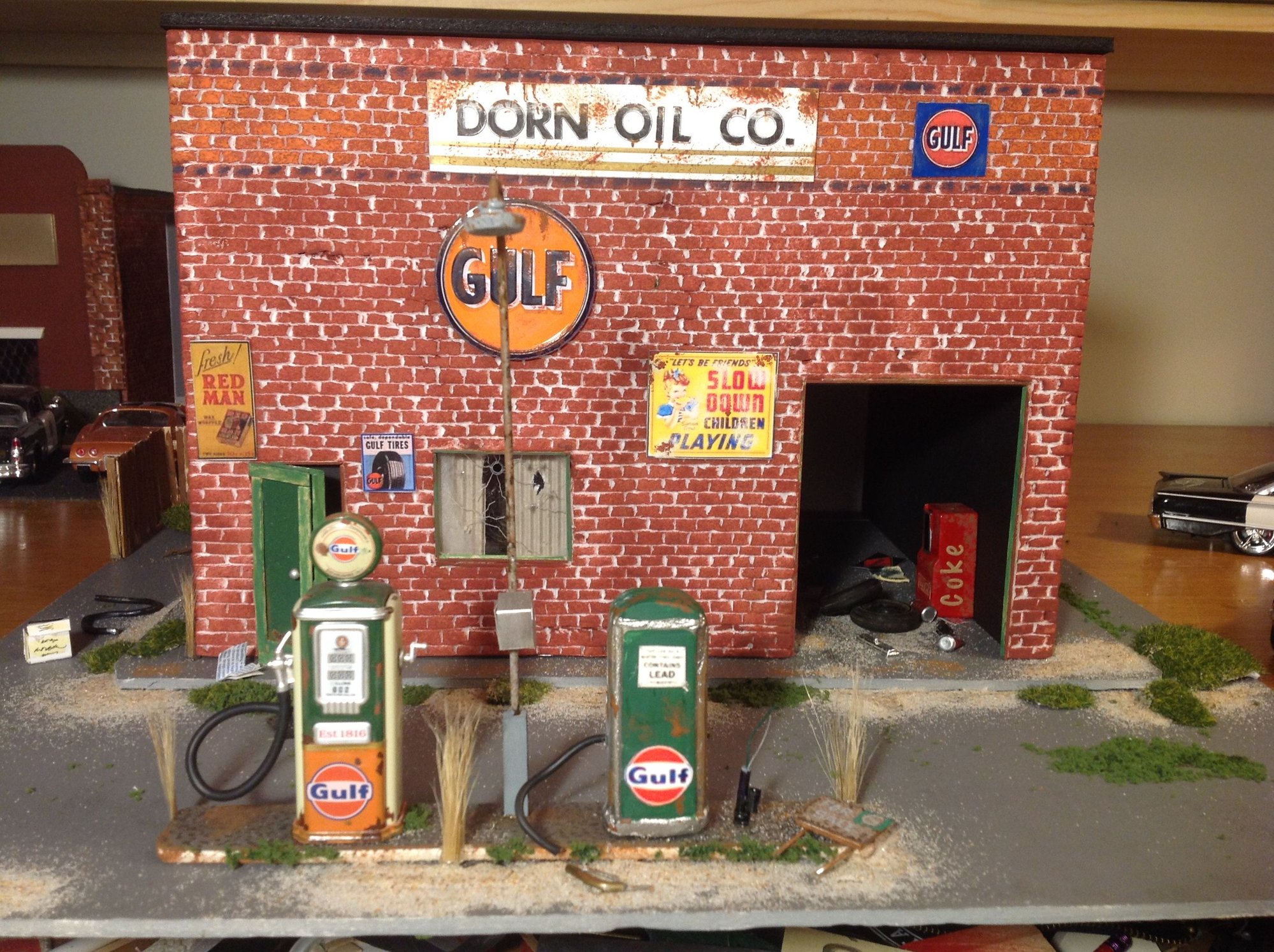 hey I like them, they look so real, I remember using those pumps to pump gas, and the older classic cars in the garage for repair.. how do you find the time and patience to do this, I am amazed. Hope Dad is doing ok.