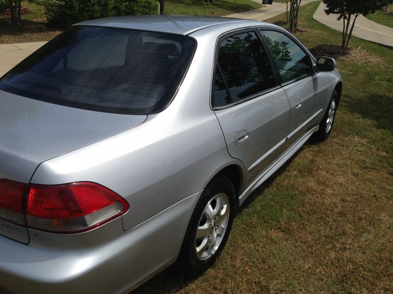 I am selling my 2001 Honda Accord Ex Sedan 5 Speed. Its a 4 Cyl with 118k miles. The car is Silver with Gray interior with Factory Black Floor mats. There are minor scratches/dings from being 12 years old. All power options, cruise, leather, power drivers seat, 6 disc in dash changer, side airbags, moonroof. I am the second owner. I bought it from Carmax in 2005 with only 18k mi on it. Lots of maintenance updates since 100k including new tires, engine mounts, front struts, radiator, and timing belt. Non smoker, very clean, title in hand.